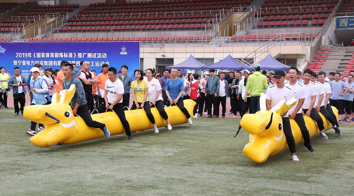為辦好本屆運(yùn)動會,集團(tuán)公司工會進(jìn)行了有益的創(chuàng)新,借助寧夏體育局2019寧夏《國家體育鍛煉標(biāo)準(zhǔn)》推廣活動平臺,與寧夏社會體育服務(wù)中心合辦,將趣味體育游戲和團(tuán)隊建設(shè)相結(jié)合,融合了力量、技巧、趣味、智力、團(tuán)隊等元素,共安排了曲線脫球跑接力賽、一分鐘俯臥撐計數(shù)挑戰(zhàn)賽、30秒跳繩計數(shù)挑戰(zhàn)賽、4人5足綁腿跑速度賽、摸石過河、旱地龍舟賽、快樂彩虹傘等7個團(tuán)隊競賽項目。來自集團(tuán)本部及各控股公司的6支隊伍,共225名職工、372人次同場競技,比賽不分男女、不分年齡,大家分享體育運(yùn)動帶來的樂趣,歡呼聲與歡笑聲為運(yùn)動會增添了無限的青春和活力。