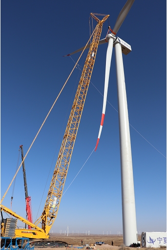 11月21日11時(shí),隨著3號(hào)風(fēng)電機(jī)組輪轂和葉片組合體順利與機(jī)艙連接,新能源公司太陽(yáng)山風(fēng)電場(chǎng)五、六期首臺(tái)機(jī)組完成吊裝作業(yè),轉(zhuǎn)入電氣安裝階段。