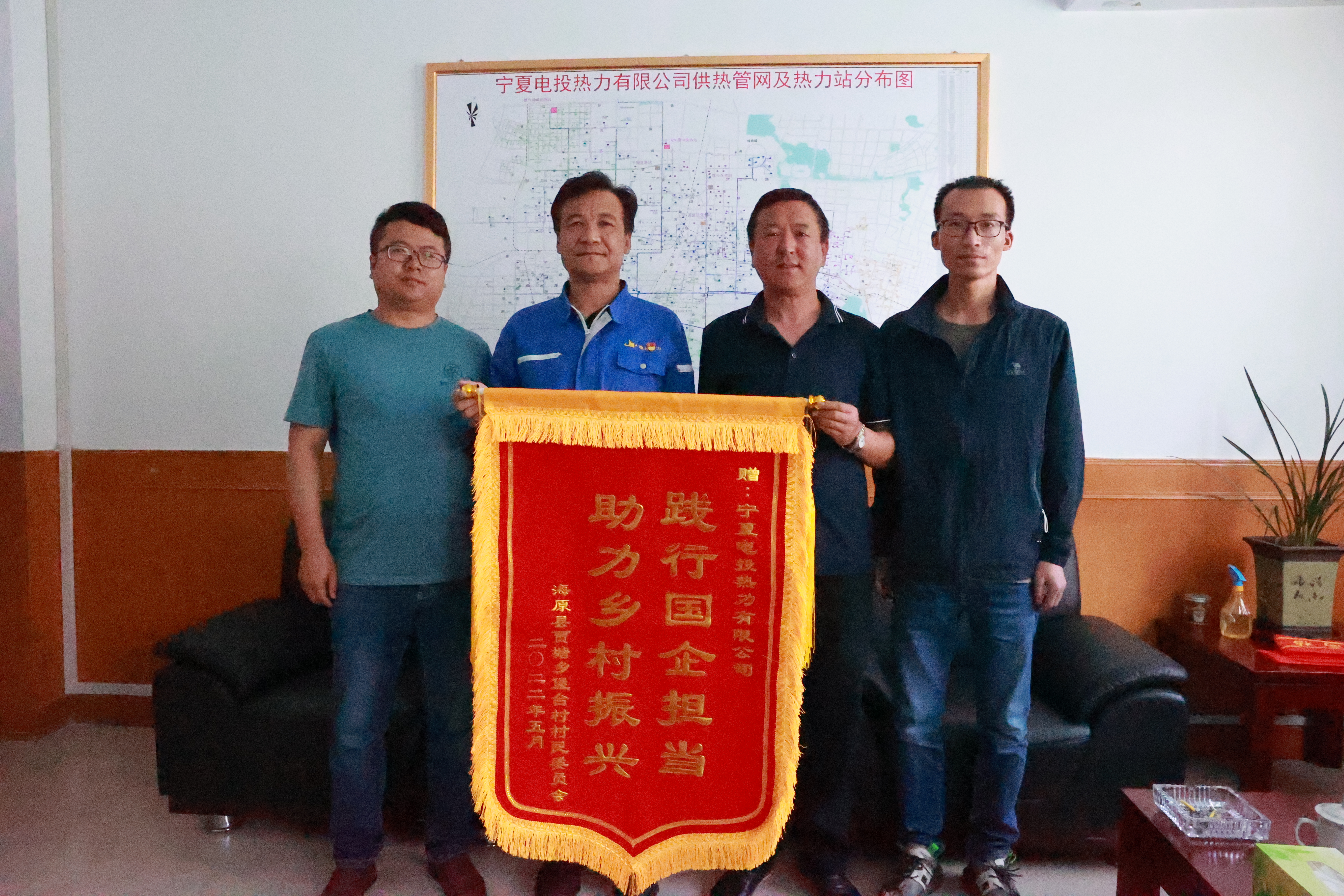 5月26日,海原縣賈塘鄉(xiāng)黨委組織部長(zhǎng)李世民一行代表全體村民為熱力公司送來(lái)一面繡有“踐行國(guó)企擔(dān)當(dāng) 助力鄉(xiāng)村振興”的錦旗,充分肯定了駐村工作隊(duì)的工作成績(jī)和辛勤付出,深情感謝熱力公司對(duì)鄉(xiāng)村振興工作的大力支持。