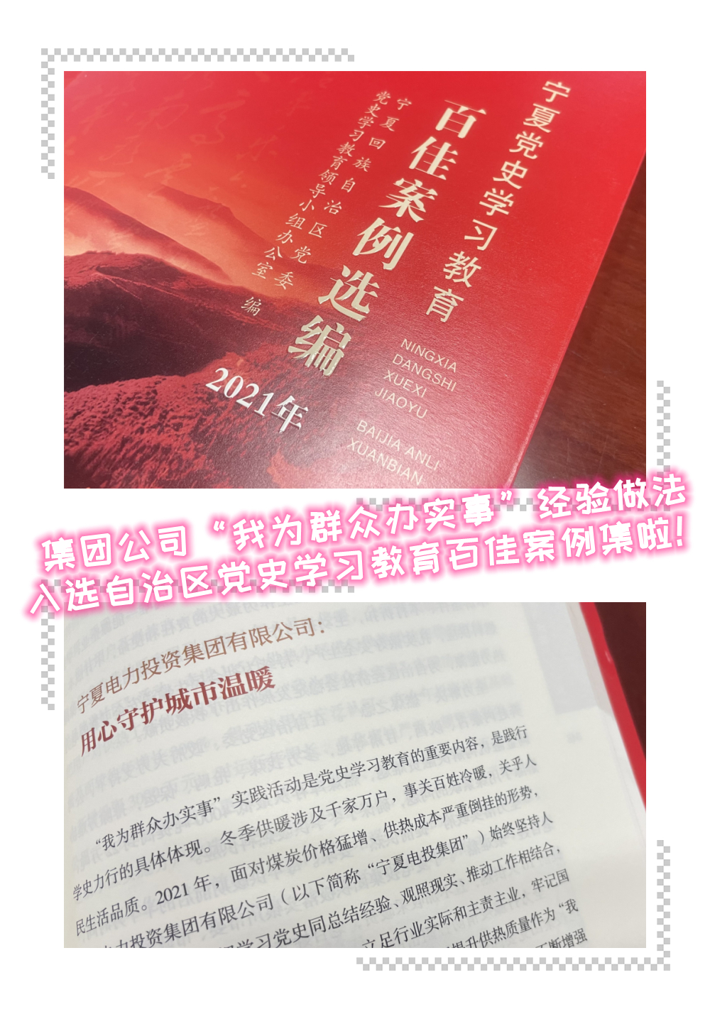 5月底,集團(tuán)公司“我為群眾辦實(shí)事”的優(yōu)秀做法入選自治區(qū)黨委黨史學(xué)習(xí)教育領(lǐng)導(dǎo)小組匯編的《寧夏黨史學(xué)習(xí)教育百佳案例選編》。開展黨史學(xué)習(xí)教育以來,集團(tuán)公司不斷筑牢新發(fā)展理念的“根”和“魂”,堅(jiān)持把提升供熱工作質(zhì)量和服務(wù)水平作為開展“我為群眾辦實(shí)事”主題實(shí)踐活動的根本落腳點(diǎn),切實(shí)為群眾辦實(shí)事、解難題,增強(qiáng)了......